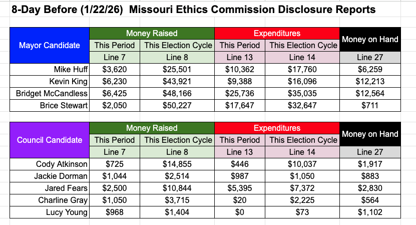 Information below comes from the campaign disclosure reports filed with the Missouri Ethics Commission.